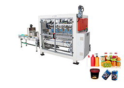 1、自動碼垛:罐頭通過鏈道堆積到輸送線上,開動機器,罐頭被吸起并放到指定的位置上,重復相同的動作,直至將罐頭碼成整垛由叉車叉出。