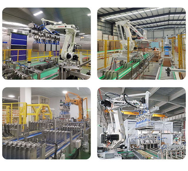 尼為智能機器人裝箱機,適用于罐頭食品、飲料、日化、化工產品的裝箱。