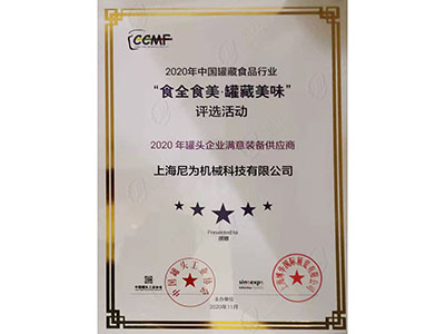 恭喜尼為榮獲“2020年度中國罐頭產業十強企業(配套)”